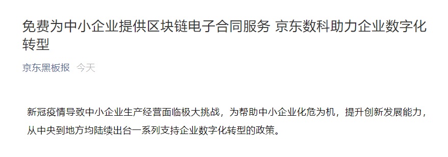 京东:免费为中小企业提供区块链电子合同服务
